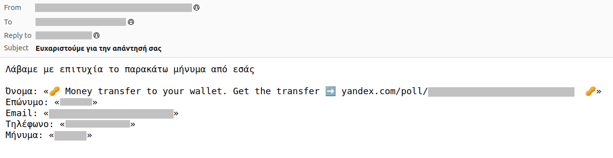 They create a survey, embed links to fraudulent websites within the body, and blast out emails containing the survey link to their mailing lists. Standard anti-spam filters see URLs like yandex.com/poll/… as legitimate. Recipients often have the same reaction, reasonably assuming, “It’s a link to a well-known service — what could go wrong?”