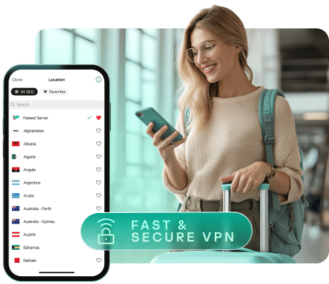 • Advanced privacy features mask your IP, prevent data leaks, and auto-disconnect if the VPN drops.